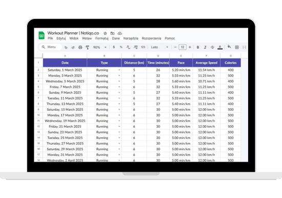 Works smoothly on laptop, tablet, or phone with Google Sheets. Easily log your workouts at the gym, at home, or on the go. Your progress is always just a tap away – anytime, anywhere.