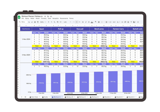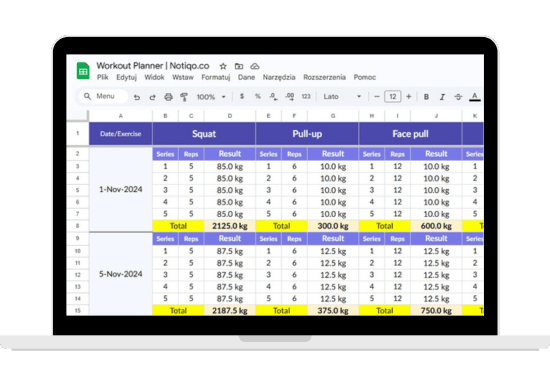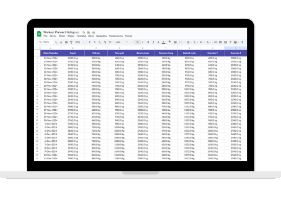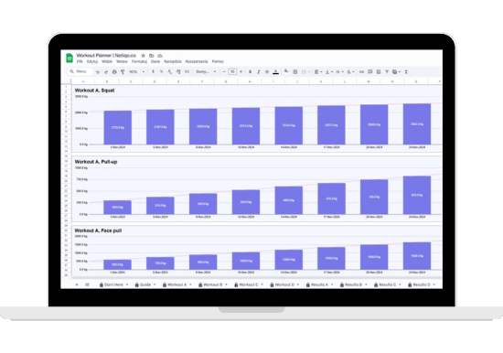 The Workout Planner helps you plan, track, and analyze your gym sessions with clarity. Monitor your strength gains, and stay focused on your fitness goals – all from one simple and powerful spreadsheet.
